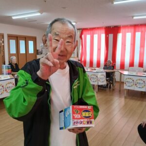 一番早くビンゴ!!を当てた卒寿のおばあちゃん。